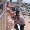 Petugas SAR Satlinmas Wilayah II Gunungkidul melakukan pemantauan pengunjung Minggu (15/5/2022)Gelombang tinggi menerjang pantai selatan Gunungkidul, Yogyakarta pada Minggu (15/5/2022).