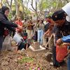 "Menarik senimannya ini, kata seniman, banteng siji (satu) banteng kabeh semua," ujar Ganjar diiringi tawa.