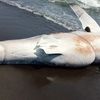 Anggota Satlinmas mendatangi lokasi dan mendapati ikan sudah terdampar dalam keadaan mati. Bangkai itu diyakini hiu tutul dari bintik putih pada kulitnya.